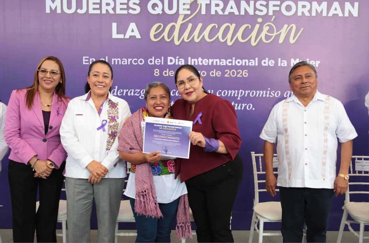 En la explanada de la dependencia, a través de la Coordinación para la Difusión y Optimización de los Servicios Educativos y la Unidad de Género, recibieron el reconocimiento Mujeres que transforman la educación, que distingue el liderazgo, la vocación y el compromiso de las galardonadas.