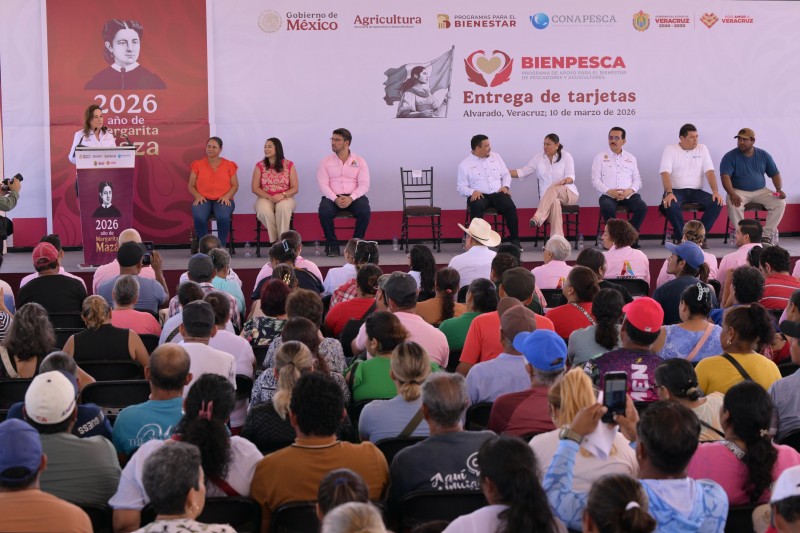 Alvarado, Ver., 10 de marzo de 2026.- La gobernadora Rocío Nahle García anunció que, a partir de mayo, el Gobierno de Veracruz otorgará, a través de la Secretaría de Desarrollo Agropecuario, Rural y Pesca, un apoyo económico adicional de cuatro mil pesos a pescadores y acuicultores beneficiarios del programa Bienpesca.