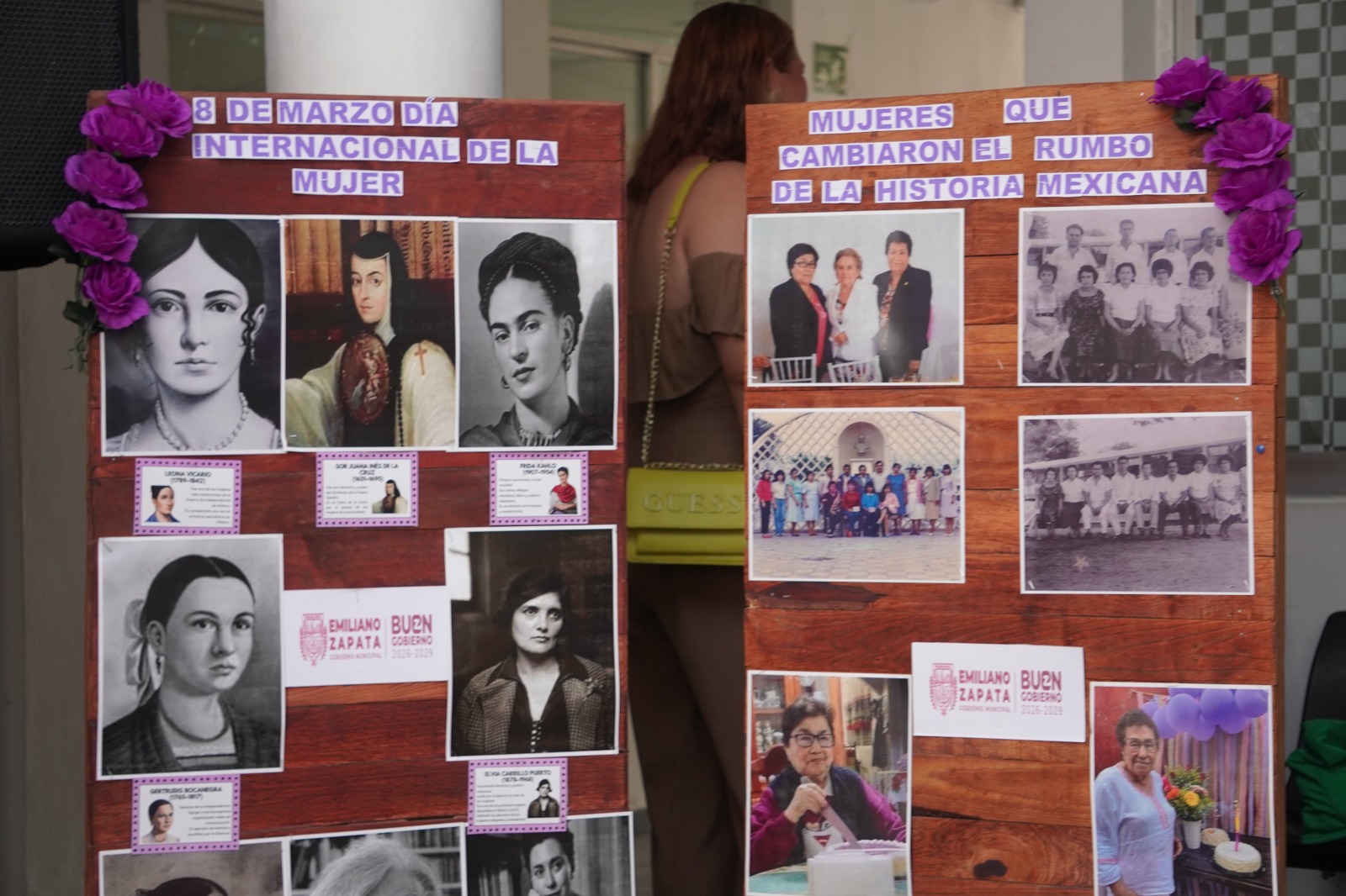 EMILIANO ZAPATA, Ver., marzo de 2026.- En conmemoración por el “Día Internacional de la Mujer”, esta el lunes 09 de marzo, se llevó a cabo un evento con personal de las diferentes áreas del ayuntamiento, en el cuál, nuestra Presidenta Lic. Angélica Arellano Domínguez y la Directora del IMM Lic. Karla Ferto en compañía del Alcalde Ing. Daniel Baizabal y el Cuerpo Edilicio, homenajearon a dos Mujeres Zapatenses pioneras de la educación en nuestro municipio.