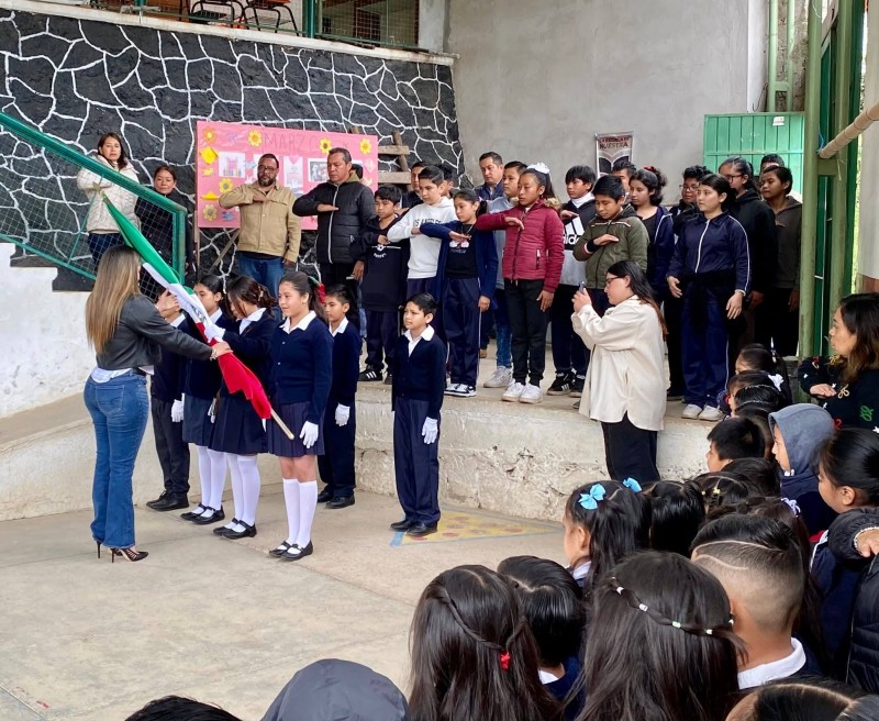 TLALNELHUAYOCAN, Ver., marzo de 2026.- La alcaldesa Arianna Ángeles Aguirre, señaló "Quiero hacer un reconocimiento especial a las alumnas y alumnos por su impecable participación en el acto cívico; ver su respeto y compromiso con nuestros símbolos patrios nos llena de orgullo y nos recuerda la importancia de fomentar estos valores desde la infancia".