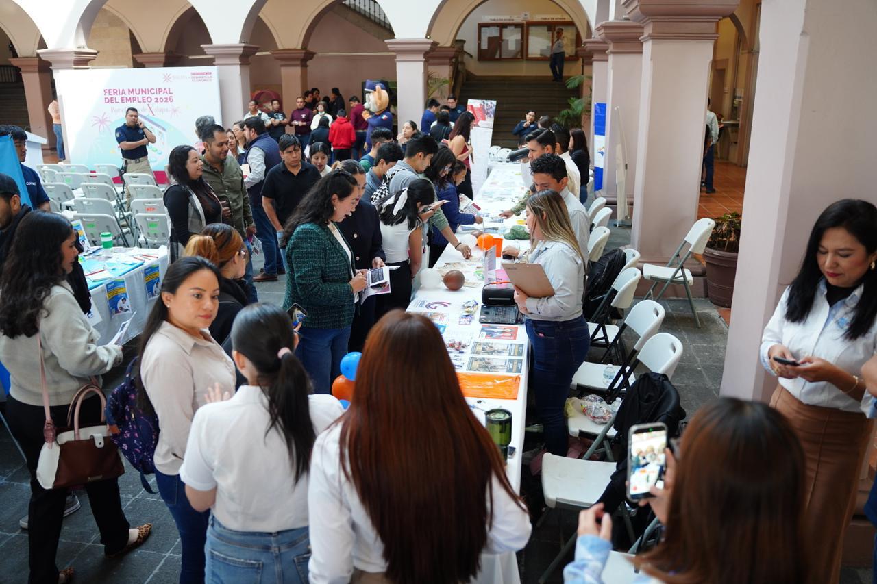 Xalapa, Ver., 13 de marzo de 2026.- En el Ayuntamiento asumimos el compromiso de impulsar el empleo como una responsabilidad pública de primer orden, ya que cuando se genera trabajo se fortalece la economía, mejora la calidad de vida de las familias y se construye una sociedad más justa, afirmó la Alcaldesa, Lic. Daniela Griego Ceballos, al inaugurar con el titular de la Secretaría de Trabajo, Previsión Social y Productividad de Veracruz, Mtro. Luis Arturo Santiago Martínez, la Primera Feria Municipal del Empleo 2026, realizada este viernes en el patio central de Palacio Municipal.