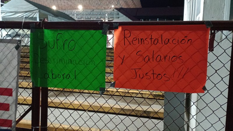En el acceso principal colocaron dos grandes bambalinas con las siglas del sindicato y diversas cartulinas con consignas denunciando el acoso laboral que son objeto algunos trabajadores en sus respectivas áreas de trabajo y la “reinstalación y salarios justos”.