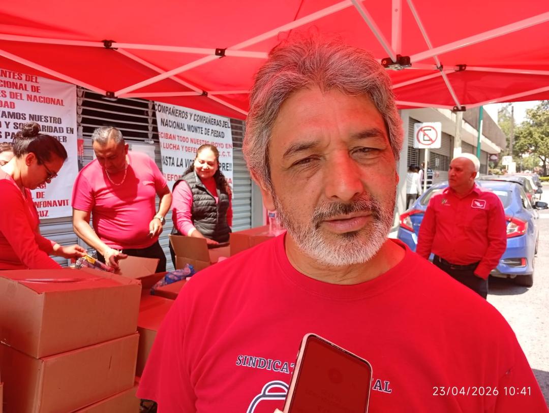 XALAPA, Ver., 23 de abril de 2026.- A casi siete meses de mantenerse en huelga por las violaciones a su Contrato Colectivo de Trabajo por parte de la administración del Nacional Monte de Piedad (NMP), los trabajadores sindicalizados se mantienen firmes y aseguran que no darán un paso atrás en la defensa de sus derechos laborales.